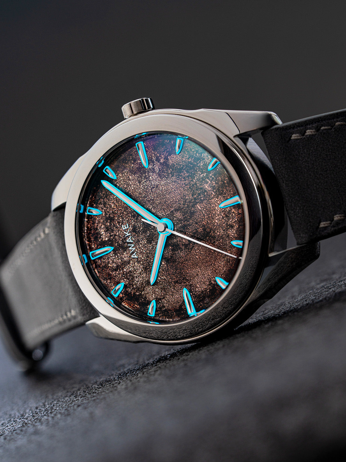 Using Super-LumiNova® BGW9, we’ve created a subtle yet striking interplay of light and shadow, thanks to the complex construction of our hands and indexes. Together, they generate a backlit effect that amplifies the depth, glow, and quiet intensity of the lacquer — offering a visual experience like no other.