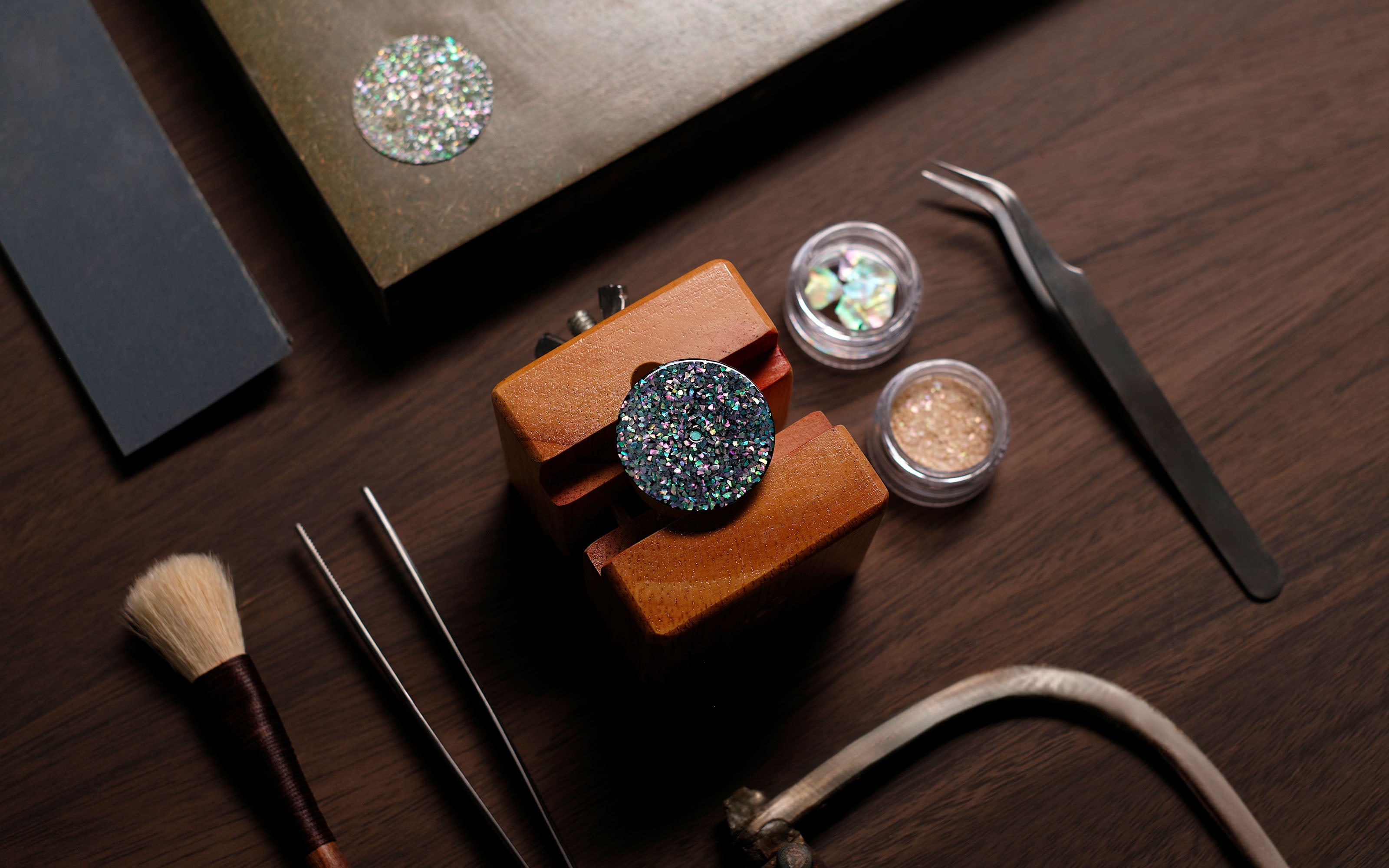 The FRAGMENTS collection is born from our fascination with Raden technique, the ancient Japanese art of embedding mother-of-pearl into lacquer to capture light in endless depths.