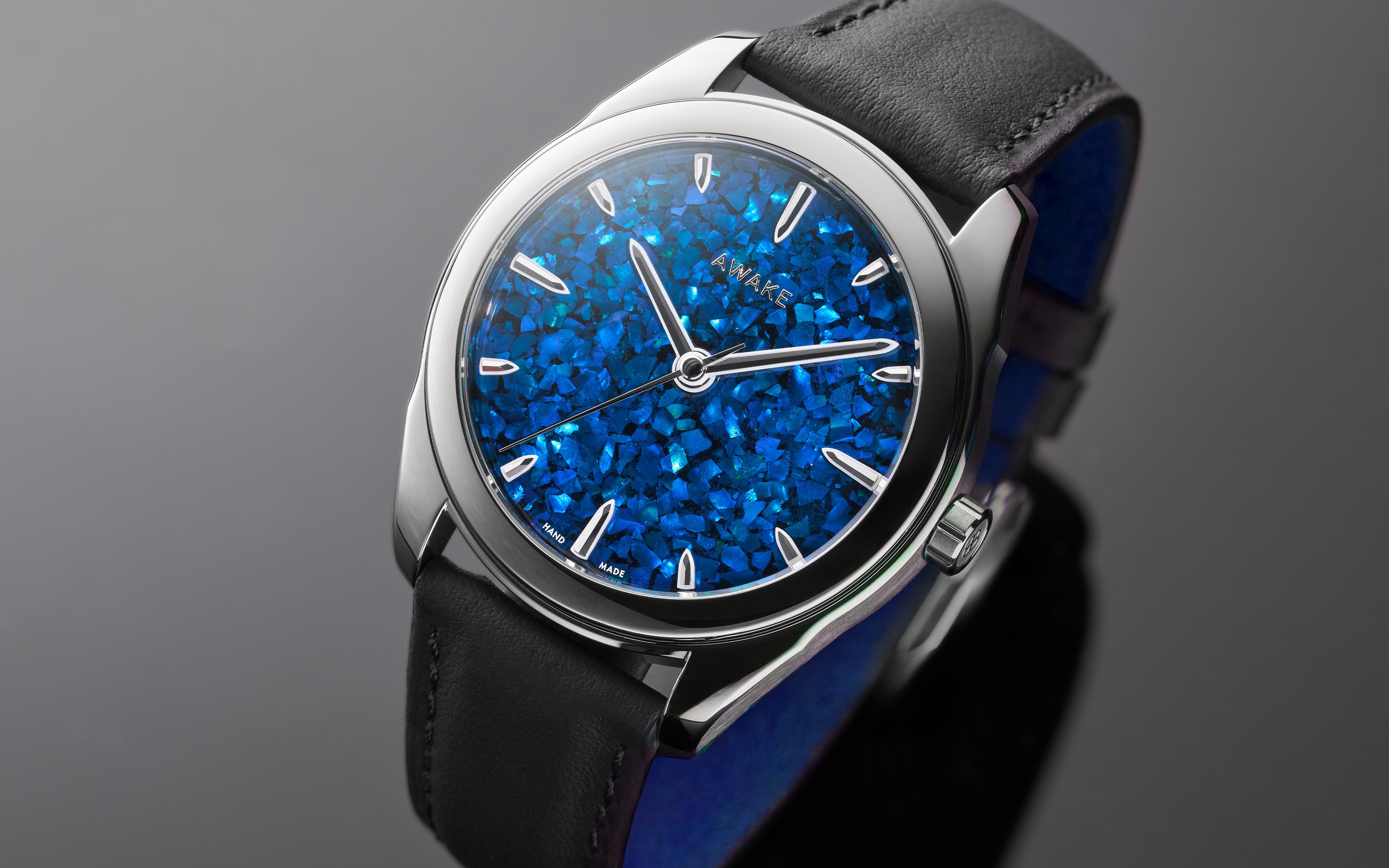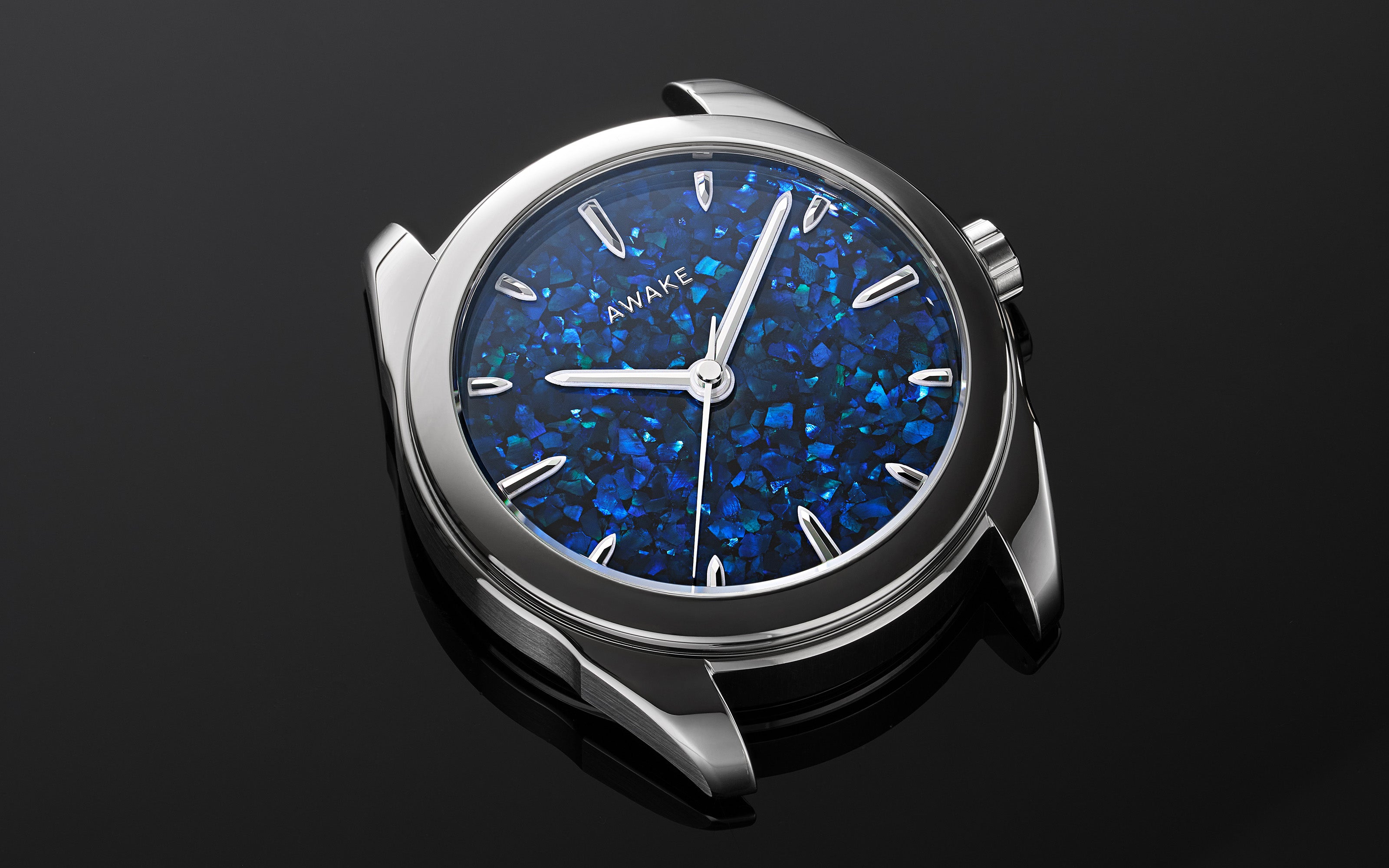 Indexes and hands: Super-LumiNova® BGW9, AWAKE luminous “coiffe” signature