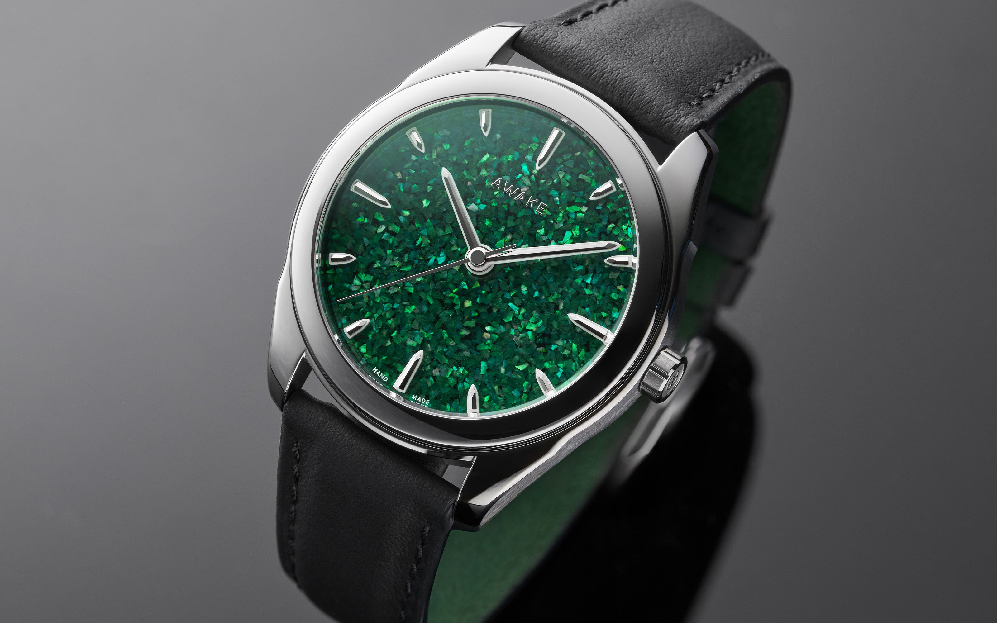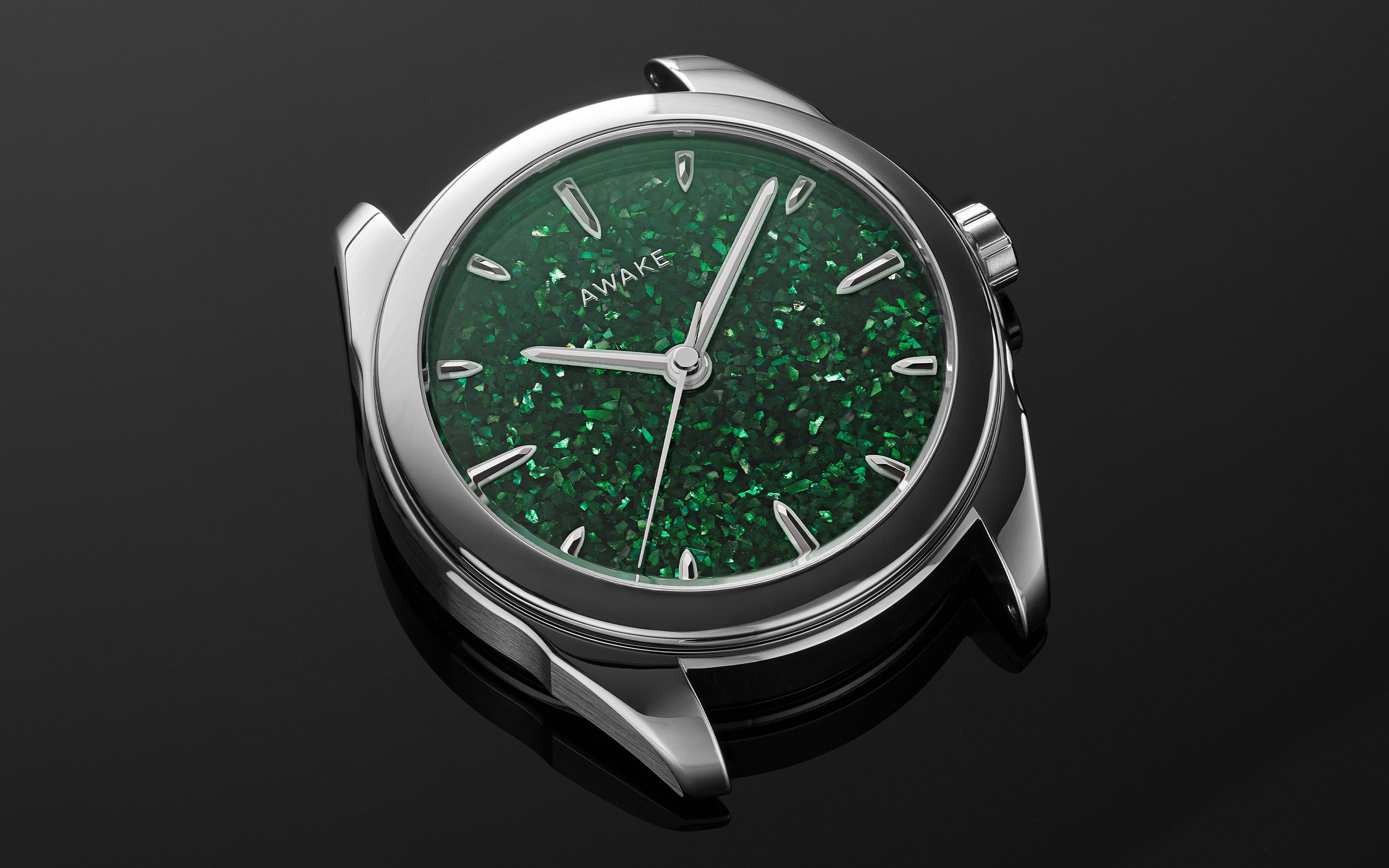 Indexes and hands: Super-LumiNova® BGW9, AWAKE luminous “coiffe” signature
