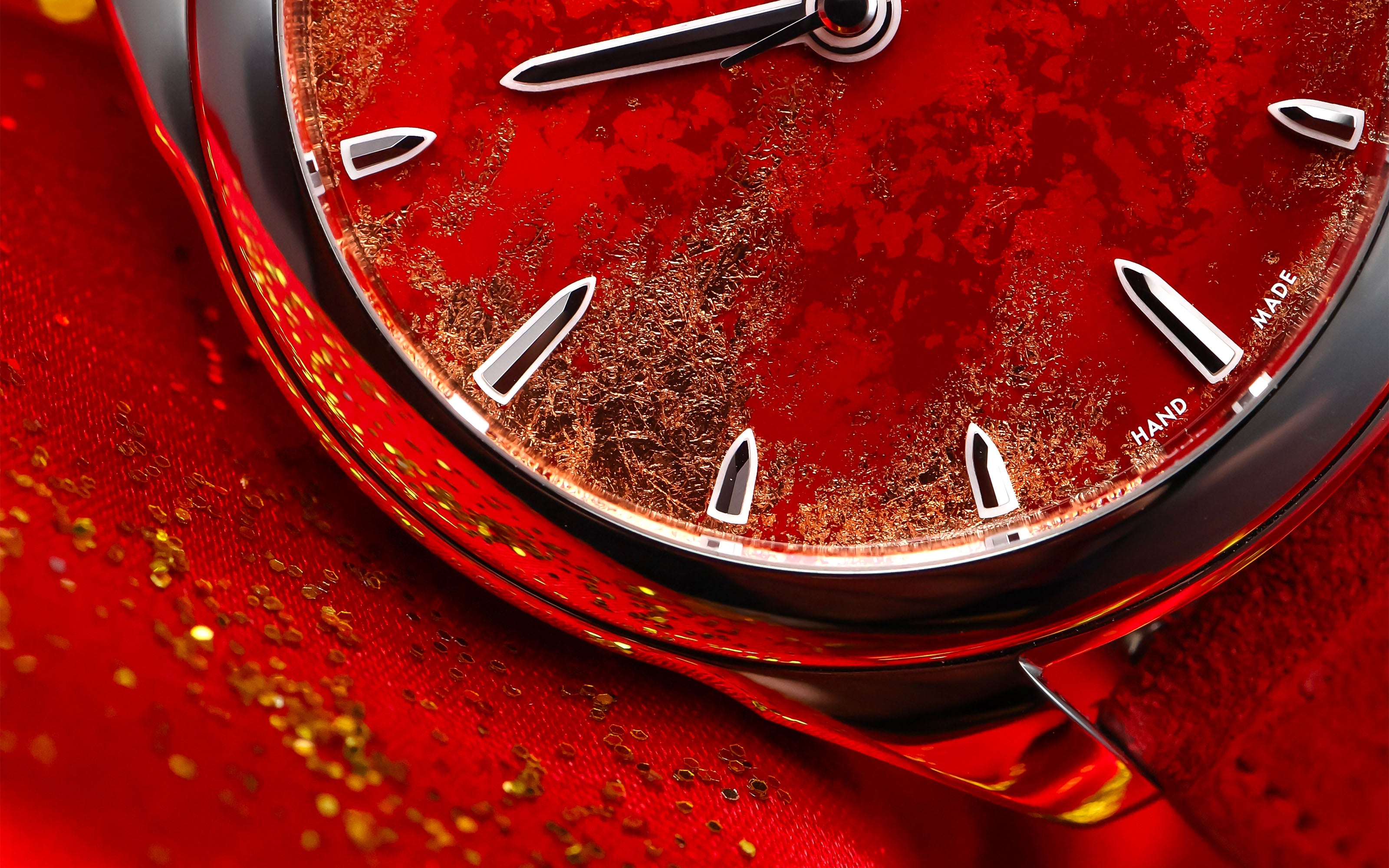 The dials of the Royal Red limited edition draw their inspiration from ritual objects from the far reaches of Asia, passed down through generations, weathered by time, and steeped in ancient stories. On their vibrant surfaces, red and gold intertwine to reveal deep textures and complex nuances that seem to suspend time itself.