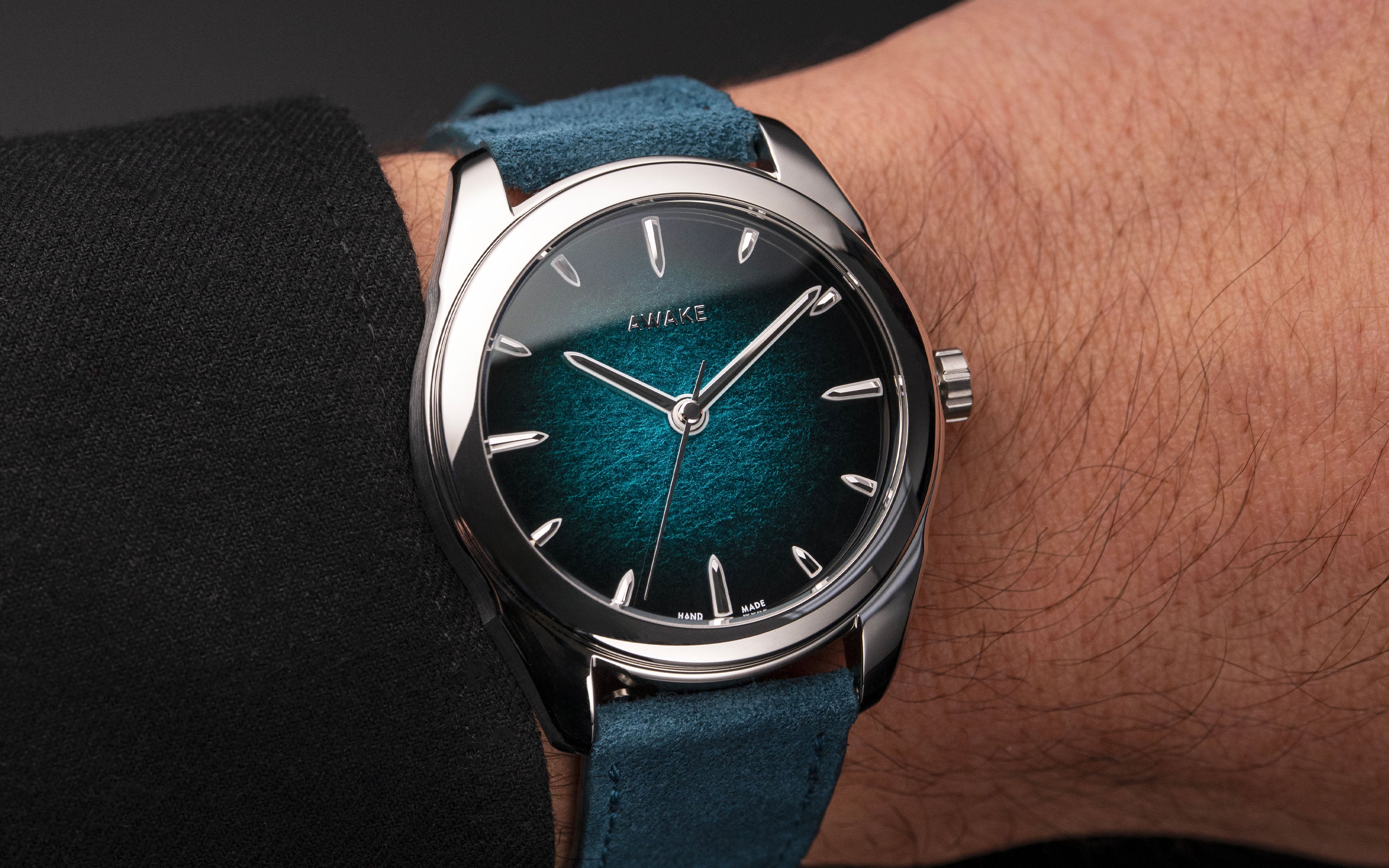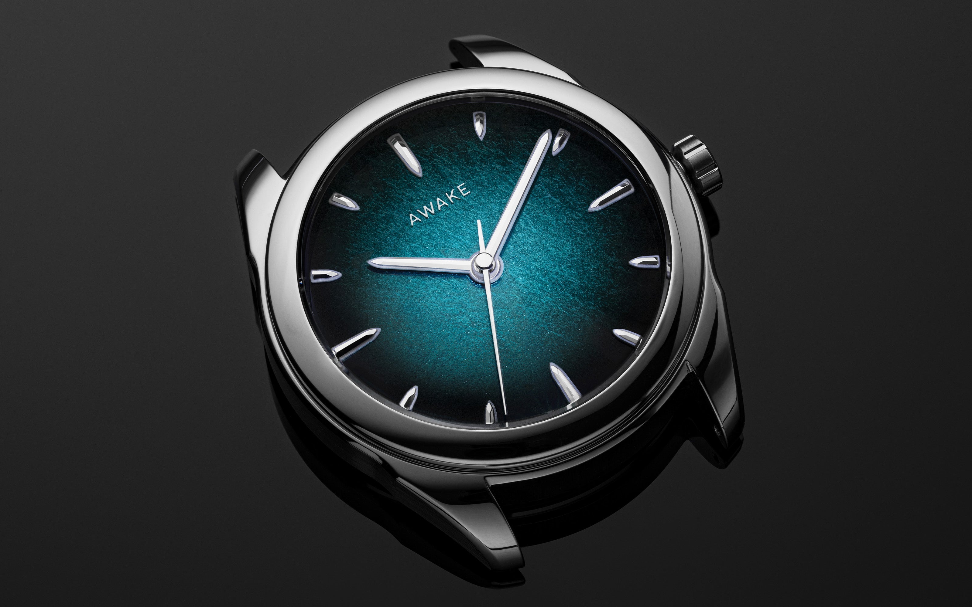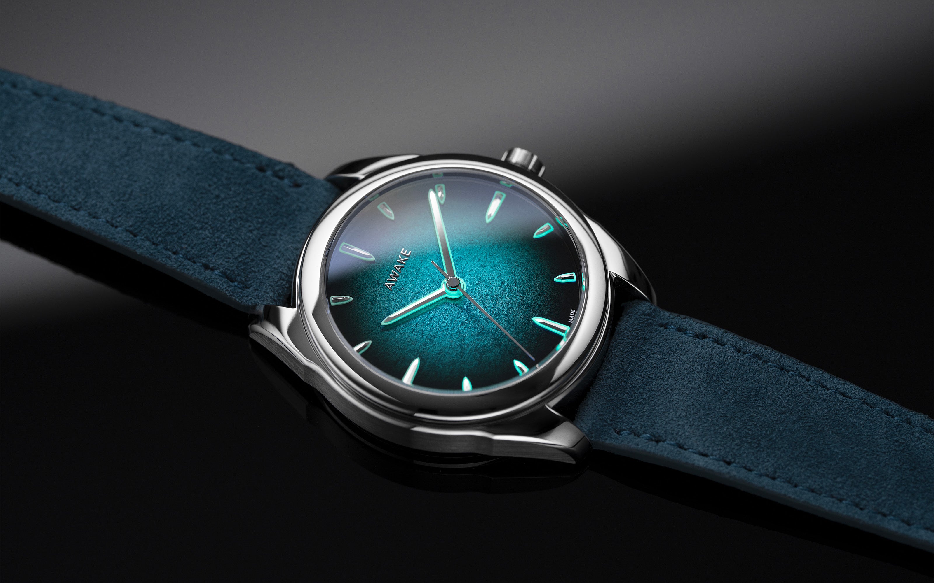 Indexes and hands: Super-LumiNova® BGW9, AWAKE luminous “coiffe” signature