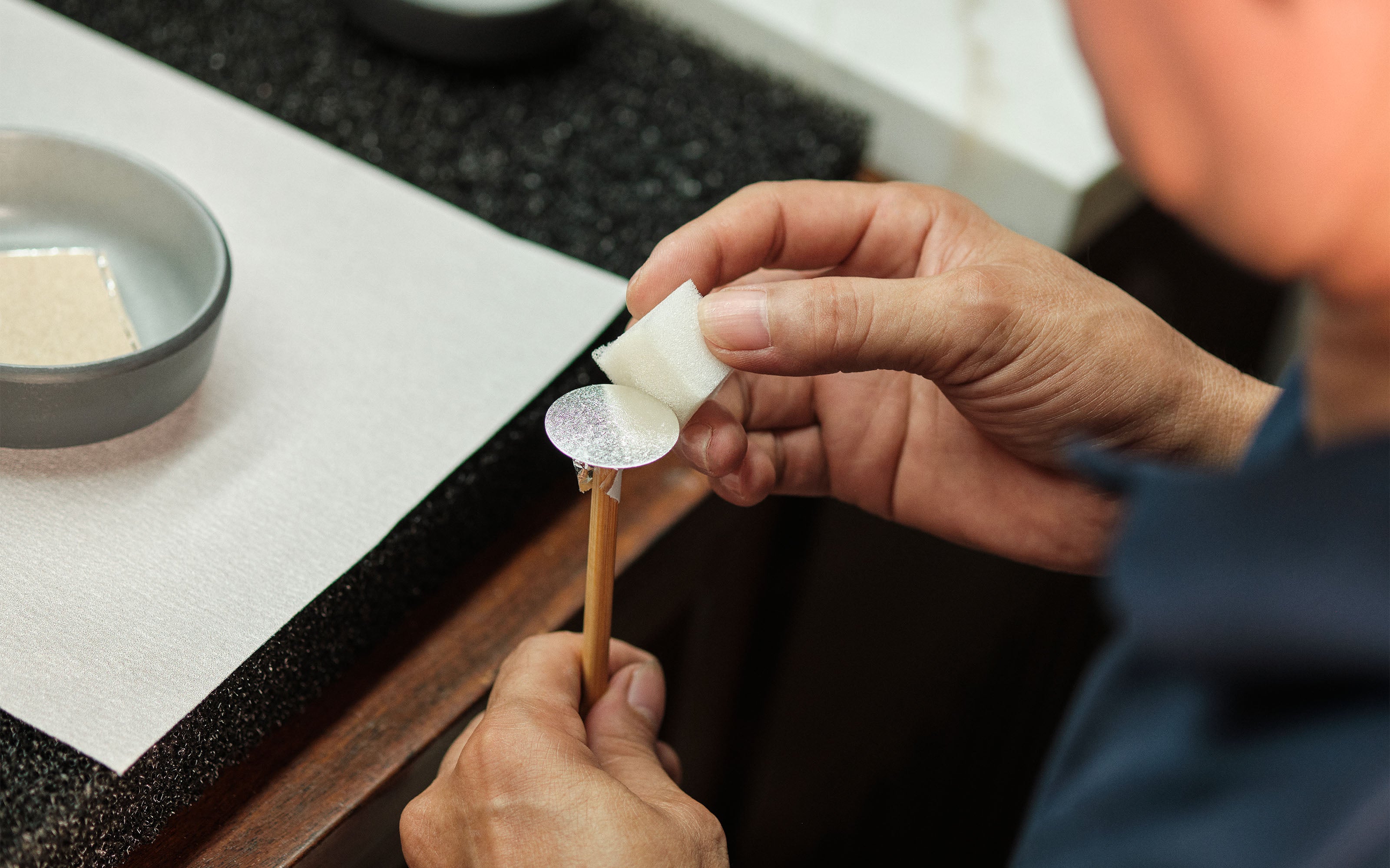 Métier d'Art dial: A 10-hour process, entirely handmade, using traditional Vietnamese techniques, and subtly combining layers of silver leaf, lacquer, and natural pigments